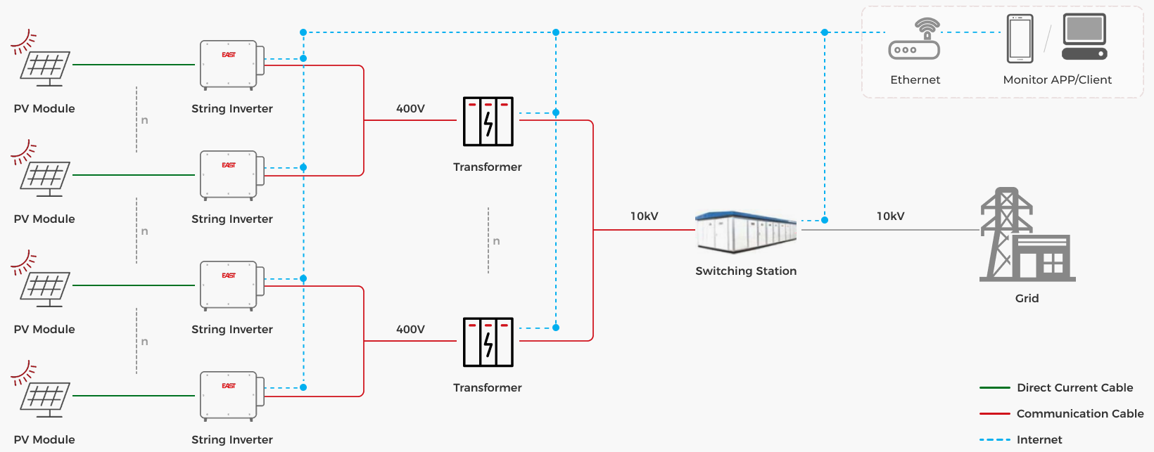 Centralized PV Station 35kV Grid-tied solution,Large-scale rooftop 10kV Grid-tied solution.